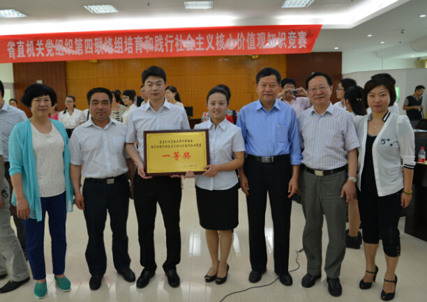 2014年5月21日在省廣電局24樓會議室成功舉辦了“培育和踐行社會主義核心價值觀知識競賽”。本活動由省廣電局具體承辦,賽后比賽仲裁同一等獎代表隊合影。